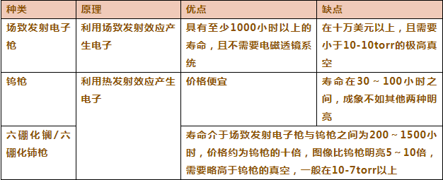 电子枪:用来产生电子,主要有以下几类: